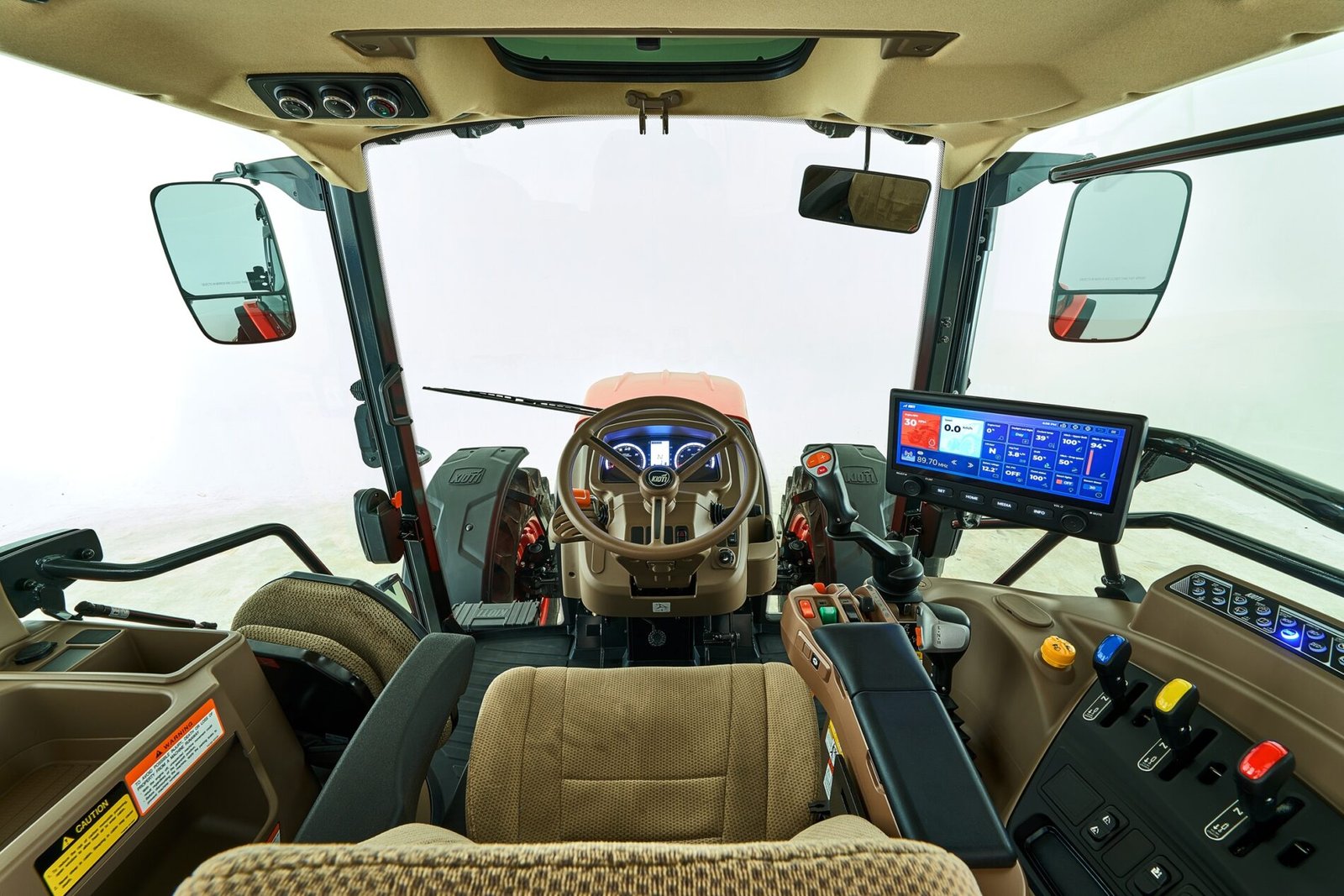 FUNKCIONALI VAIROLAZDĖ. Daugiafunkcinė krautuvo vairasvirtė su turi 3-ios funkcijos ir traktoriaus greičio keitimo mygtukuss, todėl operatoriui palengvinamos darbo sąlygos naudojant frontalinį krautuvą ar kitą priekinę įrangą.